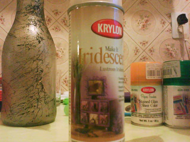 Иридисцентная краска - она... эээ... как бы обьяснить... она прозрачная, но придает мерцание такое, ну как на лужах после бензина, только более нежное... ежели близко от поверхности флакон держать получаеться плотное покрытие фиолетово-жемчужного оттенка.Краска паутинка - спрей. Серпантин в спреях видели? Вот и паутинка также только несколькими нитями вылетают. У Dupli-color мне больше нравиться эта краска, чем у крилона, в последнем краска такая деликатная деликатная, а при близком нанесении очень плотно ложиться...