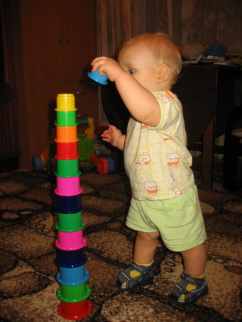 Лена, тебе надо уверенность в себе воспитывать. Покажу своего красавчика. Вот мы встаем и стоим посередине комнаты. А еще начали ходить за одну ручу практически на нее не опираясь. Ждем самостоятельных шагов (пока больше одного не делает). |