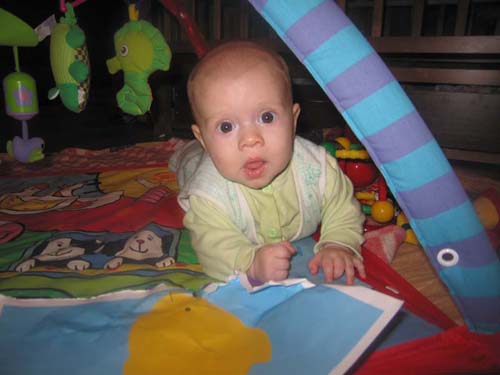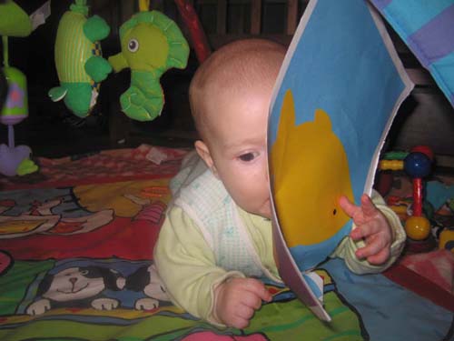 Ну а вот так Настепон разглядывает картинки, потом их рвет, жует и требует новых