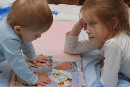 ![]() Анька притащила альбом на кровать, и они вместе разглядывали...Саша вообще книжки никак....а это смотрел так внимательно, пальчиками ковырял, короче, заинтересовался всерьез ![]() |