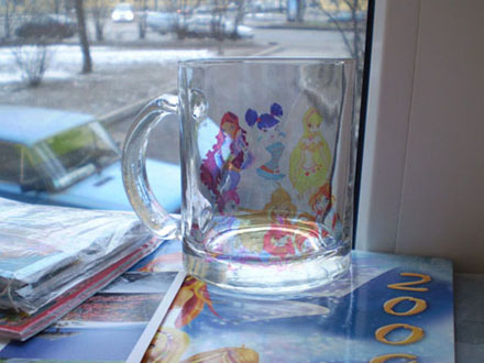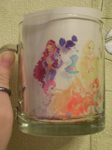 кому интересно:заказала я все ж таки кружку в нетпринте с изображением винксов, заказала прозрачную, поэтому бледновато получилось, надо было белую, но вобщем неплохо(кроме цены