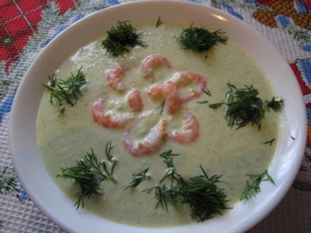Принесла суп ребенкин, с креветками и брокколи