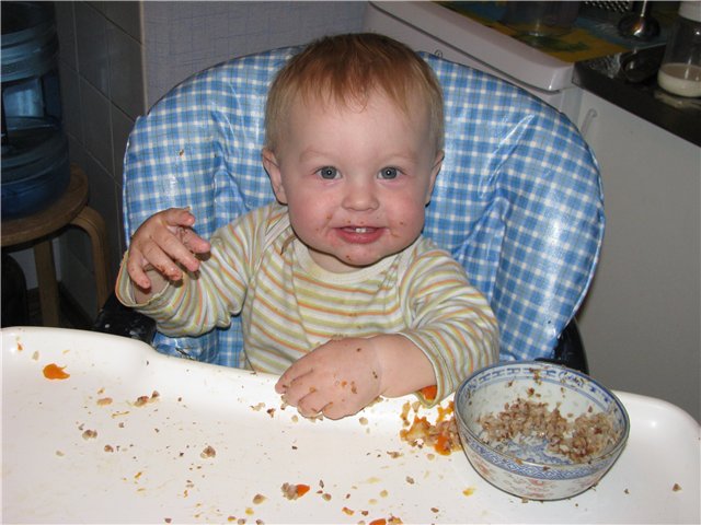 Девочки, Вику уложили и решили со Славкой поиграть. Она много внимания забирает, а он такой спокойный, добродушный, весёлый - вроде как в стороне. Ему только в глаза посмотришь - он уже расплывается в счастье. Сели мы с Димкой друг против друга, каждый зовёт Славика. А он взял да и сделал пару шагов. И так несколько раз. Мы обрадовались, побежали бабушке показывать, он ржет, но несколько раз по пять шагов сделал. Я довольная как слон.