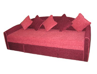 Вот примеры:тахта -это которая голубая, она не раскладывается, у нее изначально широкое спальное место, софа - в клеточку, раскладывается вперед... Третья картинка-наиболее подходящий(имхо) и дешевый вариант. Всем известный диванчик "подросток" или "ровестник". Раскладывается вбок. |