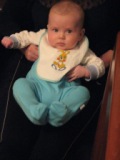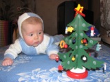А это мы в свои 4 месяца. И еще похвастаюсь - купила мелкому елочку (на фотке). Подрастет - будет сам наряжать, будет личная его елочка. Она из дерева и игрухи тоже. Ему понравилась))) |