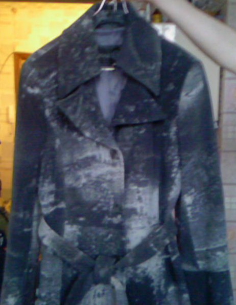 пальто 44 размера,рост 170.Смотрится супер, но немного поела моль,т.к рисунок под мрамор в глаза не бросается. Материал 70% шерсти, 20% полиамид,10% кашемир.