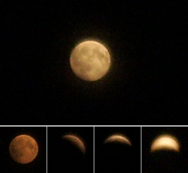 дело в том, что обе девульки у меня родились в полнолуние. причем Тася родилась в 23:45, моя мама в это время была на даче и сразу побежала фотографировать луну. а самое интересное, что тогда же началось лунное затмение. мама и его пофоткала. фотографировала она на мыльницу, но смысл понятен.