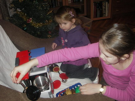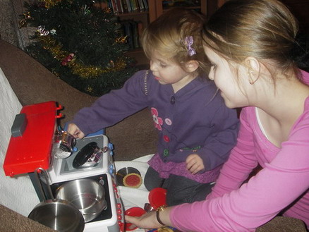 Мы скромно обошлись всем известной кухней smoby. (Но у нас ДР впереди через 1 месяц...) Правда к ней была докуплена икеевская посуда и китайские овощи, которые в неё влазят. За овощами я сносила ножки по шейку. Чтобы именно влезали в кастрюли. Нашла в Детях на нижней полке, рылась долго. Стоят 140 руб. Фотки не очень, но восторг был и у старшей и у младшей... |