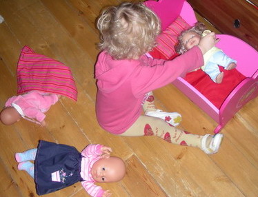 Мы подарили ББ и кроватку Шушевскую! Весь день играли!! Дочка в восторге. Еще припрятаная стиральная машина СМОБИ, и чайник с тостером..а... еще пылесос и вроде все :-)) это на рождество. А еще муж взял с меня клятвенное обещание .... не покупать игрушек до дня рождения (10 августа). Говорит что ребенок перестал РАДОВАТЬСЯ подаркам, воспринимает их как само собой разумеющееся... я в каком то смысле с ним согласна. Может действительно нужно остановиться.... |