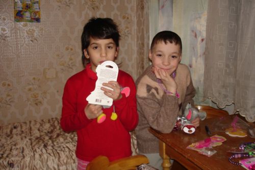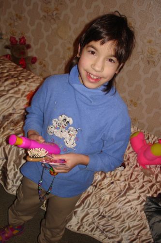 Ездила ещё в том году в ДД, передавала подарочки ваши. Всё никак не выложить здесь. Девочки, Спасибо огромное, сердечное, всем! Отдельное спасибище МАШУНЕ Онейл - девчонки пищали от восторгов Юленька,Мелочи, твои брючки чудесно подошли - они на Оле, на фотке СПАСИБО!!Вот краткий отчёт