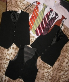 ![]() Костюмы тройки за 49-90. Все три жилетки разные - две просто супер качественные, одна(их больше всего) плохенькая. Весь комплект на моделе стоимостью 62 рубля 80 копеек![]() цвет галстуков ребёнок выбирал сам![]() ![]() |