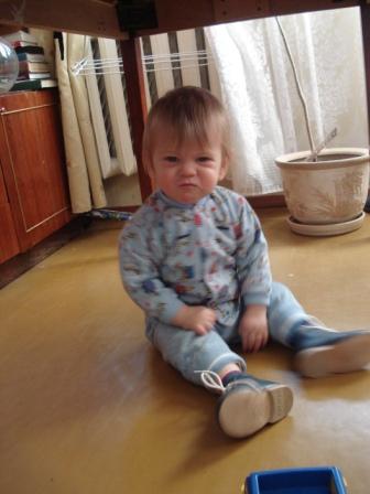 Данька тож на днях научился с кровати нашей правильно сползать, тока в ладоши так и не умеет хлопать, зато вчера научился самостоятельно передвигаться вперед на машинке-ходилке, наконец-таки видимо доросли ножки))))))))))))) еще ему оч понравилось открывать-закрывать дисковод.... а пока я это писала - он выключил комп, вот пришлось набирать заново! |