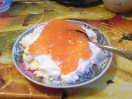 Я вот себя заставила его полюбить. Покупаю творог. Добавляю туда сметанки и какого-нибудь варенья или конфетюра. Особенно люблю киви и абрикос. И так хорошо идет этот творожок. И так красиво получается, что ням-ням. Творог очень нужен малышастику чтобы косточки росли