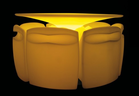 вот ещё интересный столик, он правда больше для кафе подходит, но у кого супер модерновый интерьер в квартире тоже подойдёт.он кстати цвета меняет.