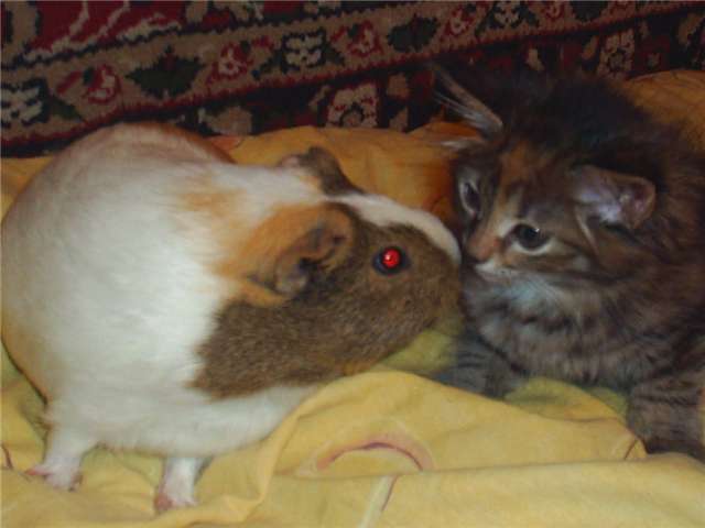 Сначала появилась старшая кошка ,через год морская свинка ,а месяц назад младшая кошка. Кошка Маруся и Свинка Гуля.  |
