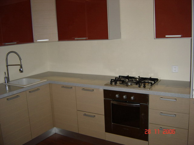 У меня по расположению примерно такая же, как у Вас. Тоже пока недоделанная: не смонтирована вытяжка, нет фартука (у меня кризис жанра - не знаю, что будет лучше по форме и выбрать никак не могу), плюс верхний фасад на холодильнике (он встроенный справа от варочной поверхности) еще не установлен (привезенный немного отличался по тону и фирма заказала новый).