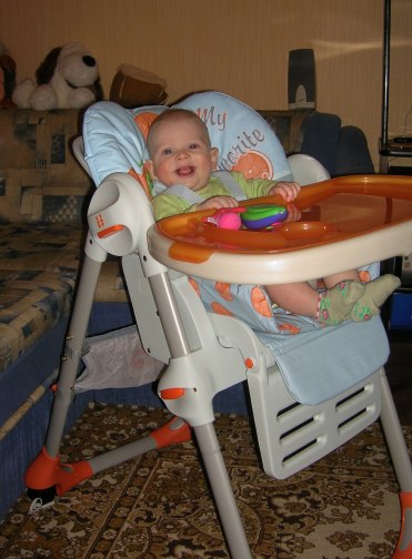 "это я раньше почему плохо ел? потому что у меня велосипеда..тьфу..стульчика не было... а теперь я буду лопать за двоих!"