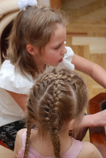 И всем мамам девочек ( а также будущим мамам девочек )...вот такие косички Аньке заплетала. Правда, получилось не очень аккуратно, Аня вертелась, а я спешила