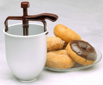 Я похожее приспособление нашла в инет-магазине МИР КНИГИ. Пока только раз изпробовала, но результат не оправдал ожиданий - жидкое тесто растекается в оладушек (дырка исчезает), а если гуще, то довольно жесткие ппышки выходят. Буду еще экспериментировать с густотой и самим рецептом. В данном случае, мне кажется, такая штуковина не пойдет. |
