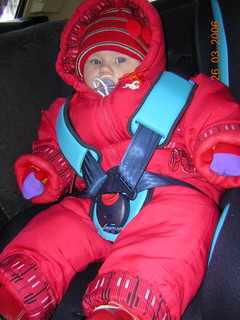 Как хорошо сидит девочка! А не жарко ей так ехать???