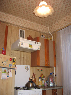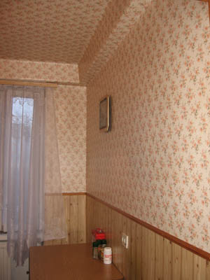 А дело в том что у нас на кухне одна стена и потолок оклеены одними обоями - под ситец, как говорит моя мама очень здорово смотрится! две другие стены оклеены обоями под дерево - как и половина стены в цветочек. Аналогично у нас сделано и в коридоре. Все кто ни приходит к нам в гости говорит что очень оригинально и ни у кого еще такого не видели!
