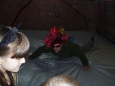 Вообще-то, праздновали шестилетие, но идея больше подойдет для возраста 6-10 лет. Итак, именинник выразил желание побыть Человеком-Пауком. Соответсвенно потребовалось соответсвующее помещение для праздника. Для Человека-Паука самым подходящим оказался скалодром для болдеринга. Т.е достаточно безопасно. Сам именинник - в костюме Человека-Паука, гостей тоже просили придти в чем-то супергеройском, но спортивная форма тоже нормально.