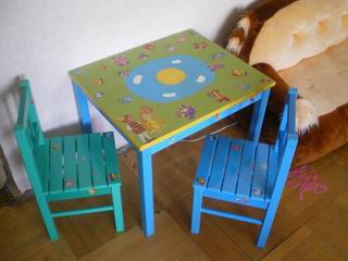 красиво))) я вот тоже загорелась наш комплект превратить в красоту неописуемую..но малец уже фломиками стол покрасил...краска закрасит их? |