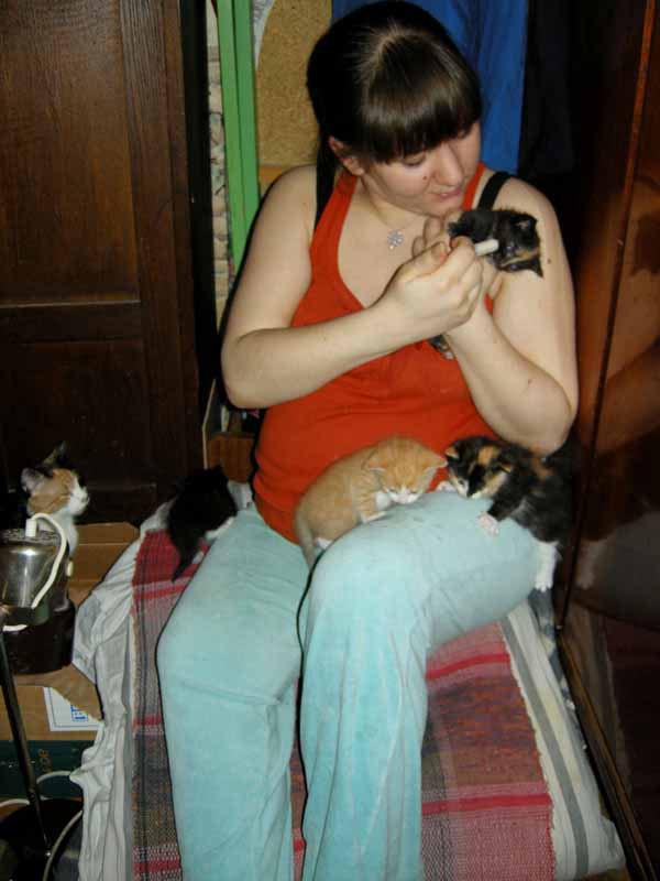 Пока меня тут не было у меня родиила кошка. Смотрела я на нее и думала от чего люди не кошки Она так прыгала и бегала до самых родов, лежала на животе, под животом, рядом с животом, вобщем как угодно. Мне так завидно было Единственное преимущество человеческой беременности - это то, что я могу открыть холодильник, а кошка не может. Правда роды у нее сложные получились, но все обошлось. Вот результат Теперь я его подкармливаю, так как кошки на всех не хватает. |