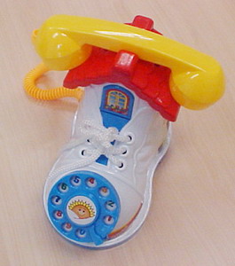 У нас есть телефон - ботинок музыкальный с реле. Но где его купили - не знаю, нам его подарили. А в закупках часто бывают игрушки FP, у них есть телефончик вот такой
