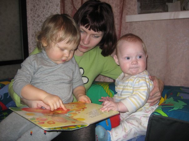 Захар сурьезный парень. Ева и Плптон карапузы сладкие, я вот пока своих вместе боюсь купать, у нас Никита по всей ванне скачет как лягуха. А вот так мы книги читаем. |