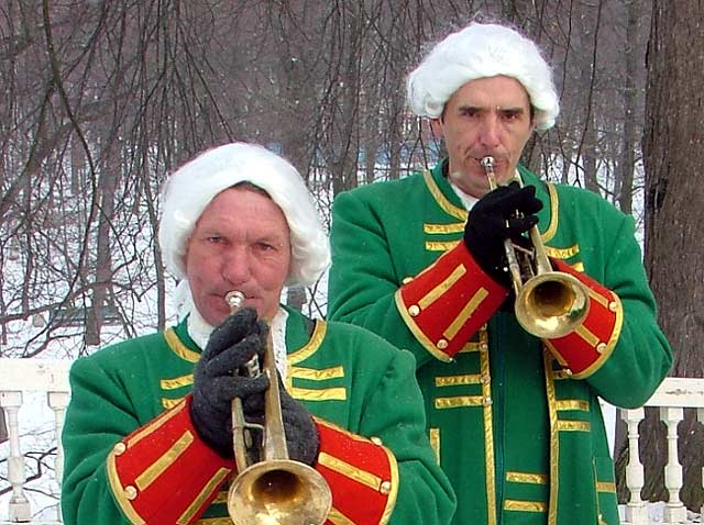 Петергоф, Нижний парк, Ффвраль месяц, мороз хороший. Перед ребятами барабан для сбора денег, перегаром несёт за версту, прохожих, гуляющих в парке очень мало, желающих сунуть денежку в барабан и того меньше. Врагу не сдаётся наш горый Варяг....