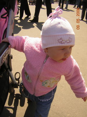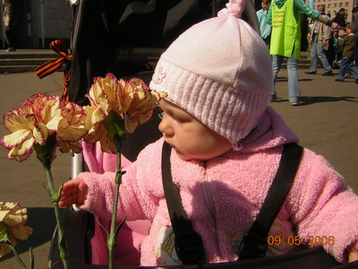 Мы тут за праздники кое-чему научились, стали вставать на ножки без опоры, из положения сидя на полу и наконец вчера сказали первое слово - ПАПА, потом БАБА. Просто до этого ничего членораздельного не было. Наш папа очень горд. 9 мая ходили на праздник к метро - был концерт и полевая кухня. Купили цветочки, попробовали их на зуб, а потом раздарили ветеранам: Последний раз редактировалось IRISHUN@, 10-05-2006 в 09:50. |