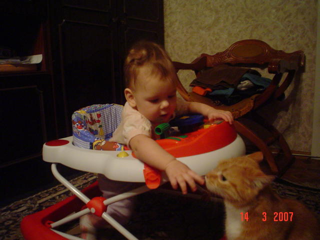 2. Первые шаги в ходунках до кота