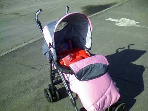 А вот так мы сегодня гуляли. И встретили мальчика маленького, моей знакомой, ему 2,8 годика, он все хотел с Марьяшей поговорить, хотя она спала. И она все-таки проснулась , заплакала, а он ей :" Тише, тише, мама тут, ну не плач". Так прикольно, такой маленький и такой отзывчивый.