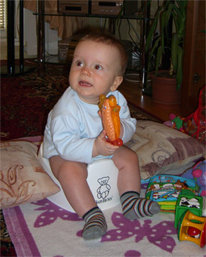 Итак, он у меня уже два раза упал с горшка. Первый только отвернулась на секунду, второй отвлек тел. звонок! А ведь был обложен подушками!!!
