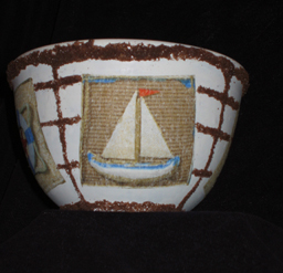 А у меня новые горшки ,но с бежевыми более менее все понятно (полоски нанесены цветным песком, на лак)