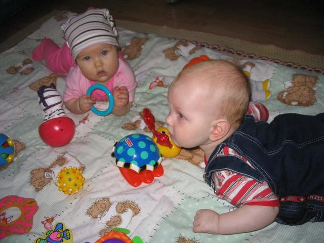 Так что теперь можем и стоять и сидеть, но ползаме пока только на животе!Я еще ничего не читала, уф!Вы столько написали! К нам приходила в гости Hеlga mama и Андрюша, вот небольшой отчетик!Маша решила, что у Андрюхи игрушки вкуснее и интереснее и все время на них покушалась еще ей очень понравились его кроссовки, так что мы не побрезговали и их отведали тоже, при этом Андрюша даже не возражал! А на поледней фотке, так мы позируем маме! ![]() |