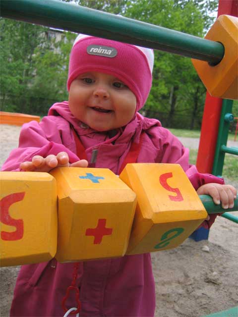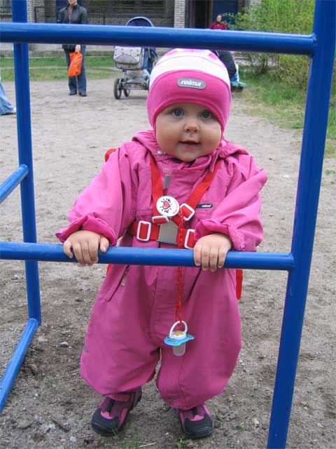 Какая Катюша очаровашка! Прелесть просто! И как будто загорелая, да, мама? А вы дома в плитьице ходите? Мы пробовали, но ползать неудобно, коленками на плтье настыпает и носом вперед падает.