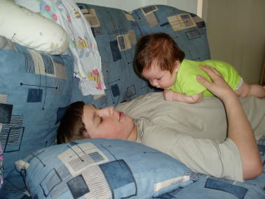 По поводу прививок - я не боюсь, все детки нормально их переносили. Настюхе на 20 мая назначили инфанрикс, что ли и полиомиелит. Я вообще по многим поводам не парюсь - игрушки не мою, соски не кипячу, пеленки не глажу... Лениво мне, если честно... Я лучше февралятский топик почитаю))) Детки все жутко красивые, как мой старший выражается -)) Можно я в этом топике тоже покажусь... 1 Так мы в слинге сидим 2 Для прикола сфоткала волосы сзади - скоро косички будем заплетать )))) 3 Ну и с братом. В такой позе сценарий всегда один - Настя крутит головенкой туда-сюда, потом замечает Вадима, заявляет ему "УУУ!!", типа :" О, ты, что ли!!!" и долго потом ему улыбается. |