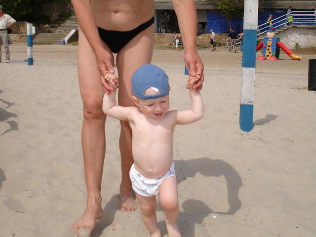 У меня сегодня прогулка с приключениями. После того как я долго выбирала во что же одеть Диму в такую жарень, мы пошли гулять. отгуляли ну максимум минут сорок причем постоянно стягивает понамку и бросает её на землю (сегодня ей резинку буду пришивать ) и бахх козявка потужился и обкакался. Уффф бегу домой влетаю а горячей воды нет . Так что одни приключения.