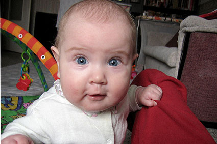 нам очень приятно. У нас сегодня гости-гости-гости, целый день, только уложила красотулю, вздохнула свободно. Лёнушка общительная девочка, порадовала бабушек у всех пересидев на руках и поулыбавшись, за столом сидела как большая, вообщем как всегда всех очаровала.Наши полгодика: Обалдеть как быстро время пролетело, уже первый полуюбилей. Получился из маленькой козявочки настоящий человечек, шилопопый и ужасно любопытный, с характером, смышлеными глазками, болтливый и в целом не капризный (ну это мы еще зубов не дождались, посмотрим как оно будет ). С каждым месяцем с ребенком становится все интереснее, хочется запечатлеть каждый момент ее взросления, и жалко что время младенчества уходит и приятно наблюдать за тем как она меняется.Это был месяц больших достижений. Алёна научилась быстро-быстро ползать, исследовала все что находится в комнате, пытается уже залезть в шкафы, вскрыть коробки, олизать все провода и плинтусы. Близко познакомилась с котом и постоянно за ним охотится. Любит пульты-тапки-коробки-журналы, к игрушкам относится спокойно, но может и в игрушки поиграть, если мама отбирает все более интересные предметы. Стало совершенно невозможно фотографировать ребенка, потому что как только она видит фотоаппарат, она тут же бросае все дела и быстро ползет чтобы облизать эту чудесную блестящую штуковину. И главное! Сегодня утром Алёна встала первый раз , поразив папу и маму. Мы даже дно в кроватке не успели еще опустить, хорошо, были рядом. Забавно получается: села она ровно в 5 месяцев день в день, встала ровно в 6, в 7 наверное пойдет Аллергия печалит нас по прежнему , пытаюсь вводить яблочное пюре, давала два дня, появилась сыпь внизу живота. Не знаю совпадение или такая реакция новая. Раньше только щеки и колени краснели. Повременю с пюре, попробую ввести каши. Пора начинать есть взрослую еду.Сколько весим не знаю, наверное завтра взвесимся, но подозреваю, что меньше всех, так как мало того что Алёна худышка, так еще и с животиком были проблемы почти неделю. Росту намерили 66 см. Вот какая девочка: |