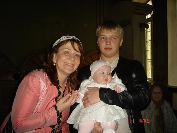 ![]() ![]() ![]() Мы тоже месяц назад. На фото Манюня и крестные. Крестный мой родной братик Олег. И вот такой у Машули был тортик. Хватило всем. Крестились в Смоленском храме. (где Ксения блаженная). |