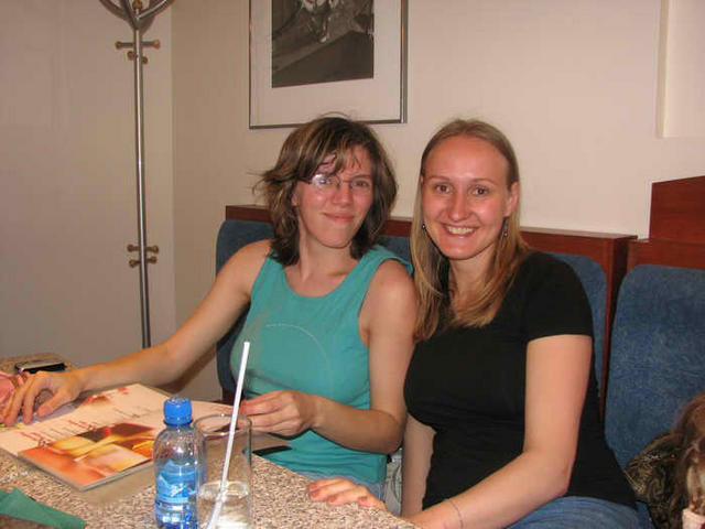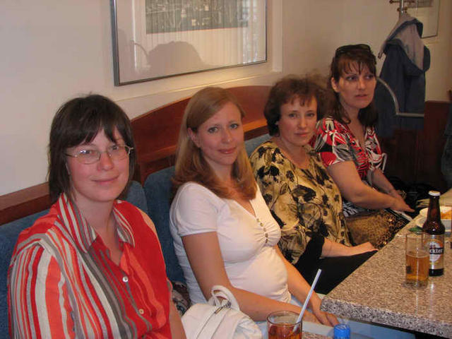 Начинаю выкладывать фотки. Не узнала девушку сидящую между Юльчетой и Дилей - она представлялась, но до нашего конца не долетело - шумно было