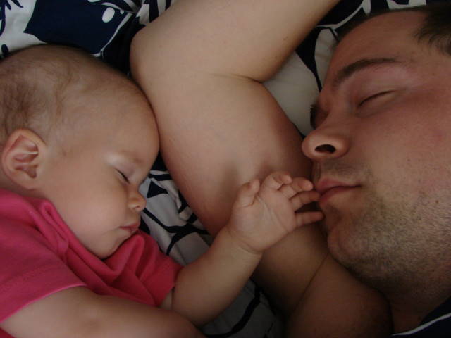 Да у Мартульки длиннющие реснички,у нас тож длинные в папу.С папой так сладенько спят.