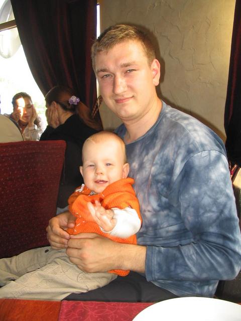 Фотототчет из ресторана. Андрюшка в безрукавке, которую ему связала моя мама.