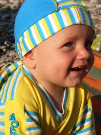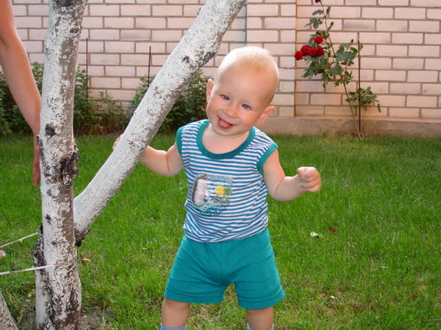 Кушаем что попало, очень любим кукурузные палочки, которыми папа балует. Кашу едим "взрослую" на молоке, на обед овощи+мясо, иногда баночное, йогурты питьевые, веллинг, соки, фрукты-ягоды. В этом месяце у Егора появилось 2 верхних зуба, итого у него их 3, научился вставать у опоры, периодически эту опору отпускает и пару секунд стоит. Очень быстро на четвереньках бегает за котом с боевым кличем. Бедный кот скоро лишится последней шерсти. Пока в городе гуляем целый день. В понедельник едем на море!!!! Игрушки не любит. Любимая игрушка - свои кеды. Говорит только слогами, в основном бу-бу-бу Целует только маму Очень любит ездить на маршрутках больших и трогать за попу стоящих людей. Не пропускает ни одной юбки, как девушку увидит, особенно в короткой юбке, так готов шею вивихнуть, смотря на нее Я серьезно, мы все уже ржет над ним. Вес 9800, все никак нам рубеж в 10 кг не пройти.