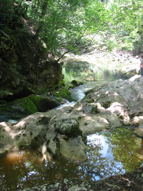 Сам каньон глубиной около 40 метров, тропинка идет по самому дну, вдоль речки. Мы до конца не дошли, Слака устал. Мы пошли обратно, а група пошла дальше. На обратном пути нафоткались, погуляли, мне больше обратная дорога понравилась, потомучто догонять никаво не надо было. Совет: если ехать с ребенком надо двое взрослых, иначе ничево толком не посмотреть и вымотаешся. Описывать красоту бесполезно, вот фотки.