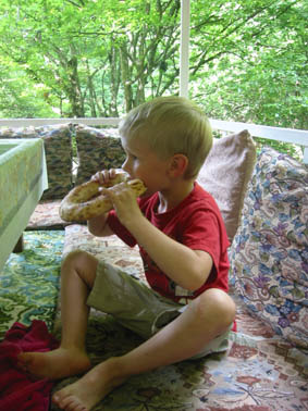 На стоянке есть кафе, держат ево татары, там четыре беседки над речкой, просто приятно посидеть, послушать речку. Обед на двоих с шашлыком и пивом обошелся в 50 гр. На обратном пути Славка спал на последнем сиденье.