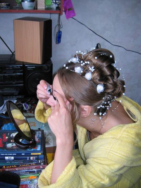 Видимо это мне так сильно повезло, что прическа была убогая до ужаса, мне так хотелось цветочков, бусинок, стразиков и немножко локонов, а получилось все очень буртально и разваливаться начало прямо по пути во Дворец, фату буквально ловили, т.к. прикреплена была как-то хиленько на маленькие шпилечки, которые вылетали из прически при любом неаккуратном движении... ![]() ![]() В итоге фата висела криво всю официальную часть, а добравшись до лимо я ее просто сняла нафиг, чобы еще больше не расстраиваться. В общем, было не то чего так сильно хотелось...![]() |
