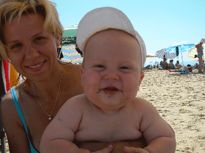 Обещала написать про Португалию. Отдохнули хорошо, только бедного Тоника замучили. Всетаки там океан, а не море и для маленьких деток это не очень. Вода в океане не очень теплая не больше 22 потому купали его мало. А он очень любит в воде плескаться Волны там почти всегда есть, потому ползать его пускала только чуть-чуть и только держа его за футболку. Большее время Тонька на пляже спал. Зато Юльку было из воды не вытащить она там балдела на волнах.